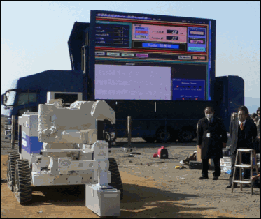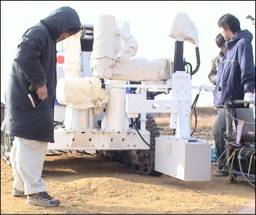 電気通信大学荒井研究室では、独立行政法人科学技術振興機構(JST)の「人道的地雷探知・除去技術開発プロジェクト」に参加する大学及び企業と共同で、アフガニスタン復興において大きな問題となっている地雷の探知と除去を安全に行う為に、無人車両や遠隔操作アーム及びレーダー等で構成される地雷除去機器の開発を行っています。