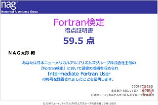 このFortran検定はFortran(主にFortran90/95)に関する知識や技能をテストするものです。 本検定は日本ニューメリカルアルゴリズムズグループ株式会社独自に行っているもので非公式のものですが、 皆様にお楽しみいただければ幸いです。