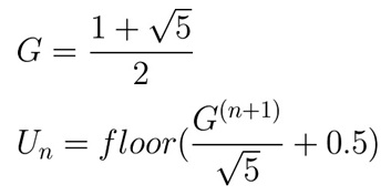 今回のウサギのつがい数の問題では繰り返し計算を行って12ヶ月後の値を得ることができましたが、 実はこの問題は以下のような解が見つかっていて、繰り返し計算しなくても答えを得ることができます。