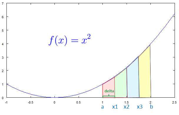 ここでは区間[1,2]における関数 f(x)=x**2 の積分値を求める例を取り上げます。