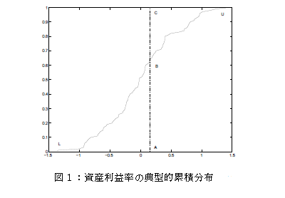 図2はΩが図1の累積分布をもつ資産の限界利益率rtによってどのように変化するかを示しています。