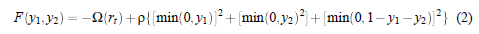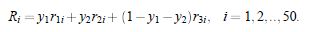この式では、rjiは i 日目の資産 j からの観察された利益率を示しています。 R1,…,R50から累積分布を生成することができます。従って特定の利益率 rtについて対応するΩ(rt)を計算することができます。Ω(rt) はまた投資利益率の関数で、それを最大化する y1とy2を選びます。