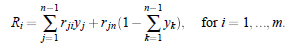m 日のパフォーマンス推移に基づくn 個の資産ポートフォリオを含む大規模問題を考えたいとします。前述のように、関係 Σjyj=1 を使用し、以下のような投資比率の観点から日次ポートフォリオを表します。