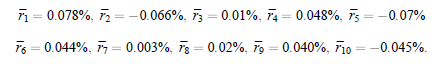 rtの小さな値に関しては、解は一般に図13-15 のグラフのΩ曲線の相対位置と一致している資産1、4、6と9を好みます。rt=0.075% と rt=0.1% の場合は、ポートフォリオは資産1が優位にたっています。