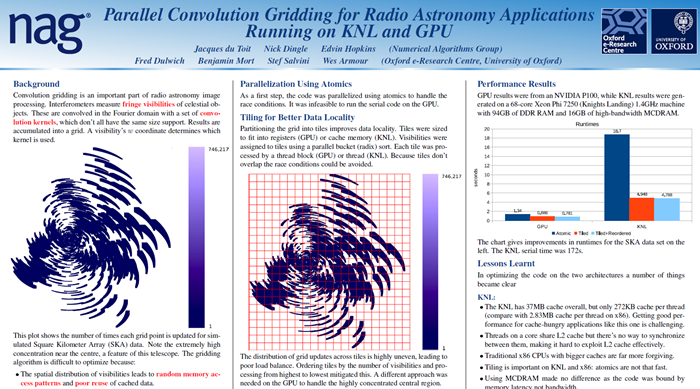nAGはオックスフォード大学と協力して、畳み込みグリッディングアルゴリズムの性能を改善する方法を検討した結果、NVIDIA® P100上でより高速に実行されるこが示されました