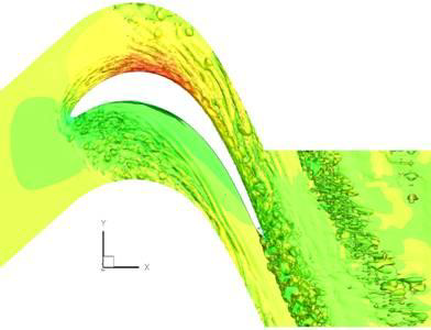 図8:RANS-NLESによる高圧タービン内の流れ
