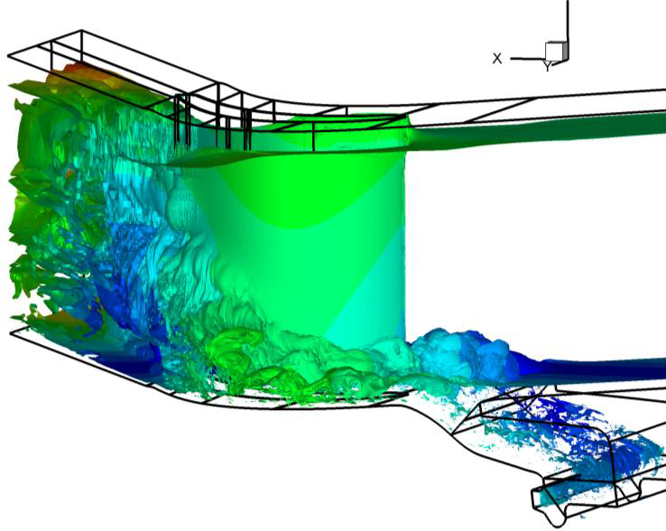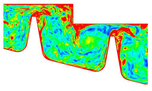 非定常乱流に対して、レイノルズ平均ナビエ・ストークス(RANS)モデルは、対流後流や大規模剥離、複雑な渦構造などの非定常性が支配する乱流の取り扱いにおいて、通常は困難に直面します。その例としては、ガスタービン動翼シュラウド流、ハブ・キャビティ/エンドウォール領域、タービン動翼内部冷却通路流、カットバック後縁部領域などがあります。エアーシステム内部キャビティ流も高度な乱流状態にあります。これらは、RANSや非定常RANSへ理論的な疑問を提示します。RANSモデルは、基本的な噴流でさえ貧弱な性能であることが文献[1,2]で示されています。