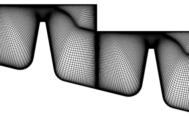 図13:ラビリンスシールのメッシュ(左図)、およびそのLES流れ場の渦度等値面。
