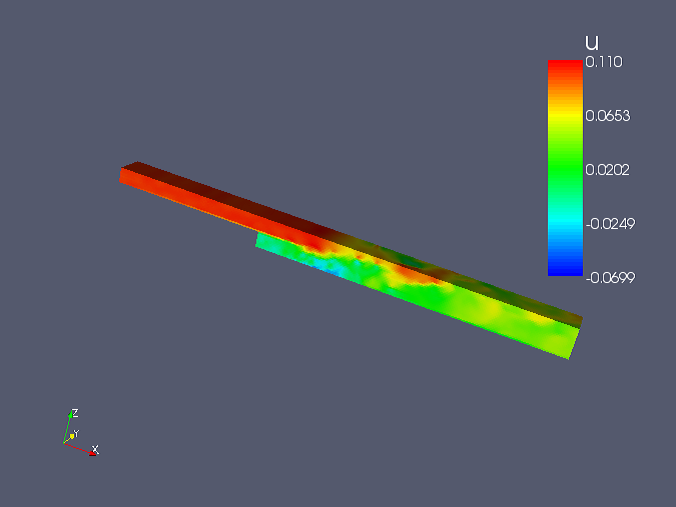 図3:4万ステップ時における流れ場のx方向速度成分