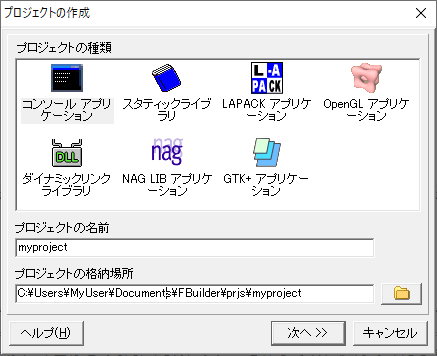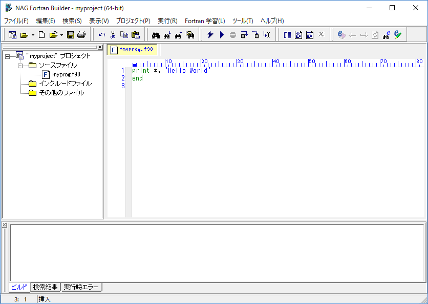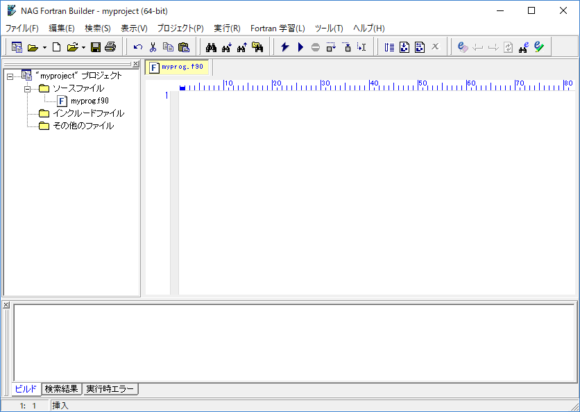 Fortran Builder では、プロジェクト単位でプログラムの作成からビルド・実行までを行います。