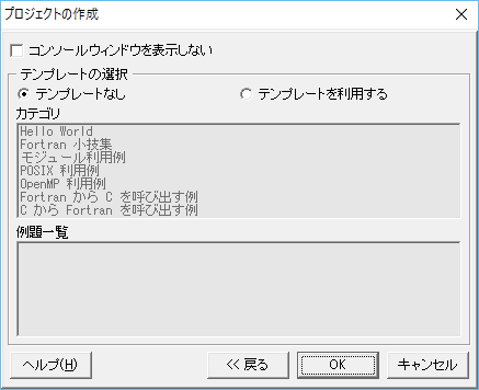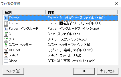 以下のような画面が表示されますので、「Fortran 自由形式ソースファイル」を選択後に「OK」ボタンを押してください。