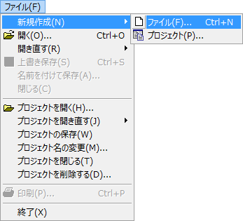メニューから「ファイル > 新規作成 > プロジェクト」を選択してください。