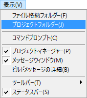メニュー「表示 > プロジェクトフォルダー」から、プロジェクトフォルダーを直接開くことができます。