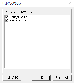 「コールグラフの表示」ウィンドウが開き、プロジェクトに追加されている Fortran ソースファイルの一覧が表示されます。