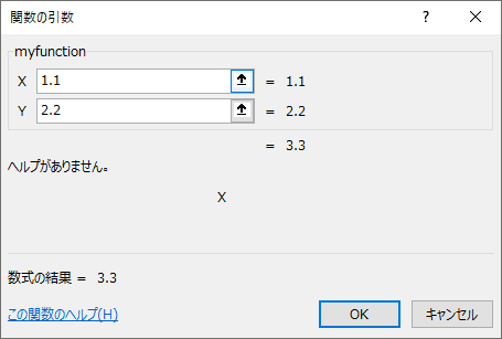 ここでは、X に 1.1、Y に 2.2 を直接入力しています。