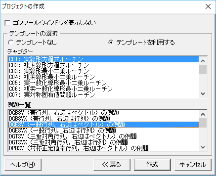 以下に Fortran Builder で LAPACK テンプレートを利用する手順を示します。
