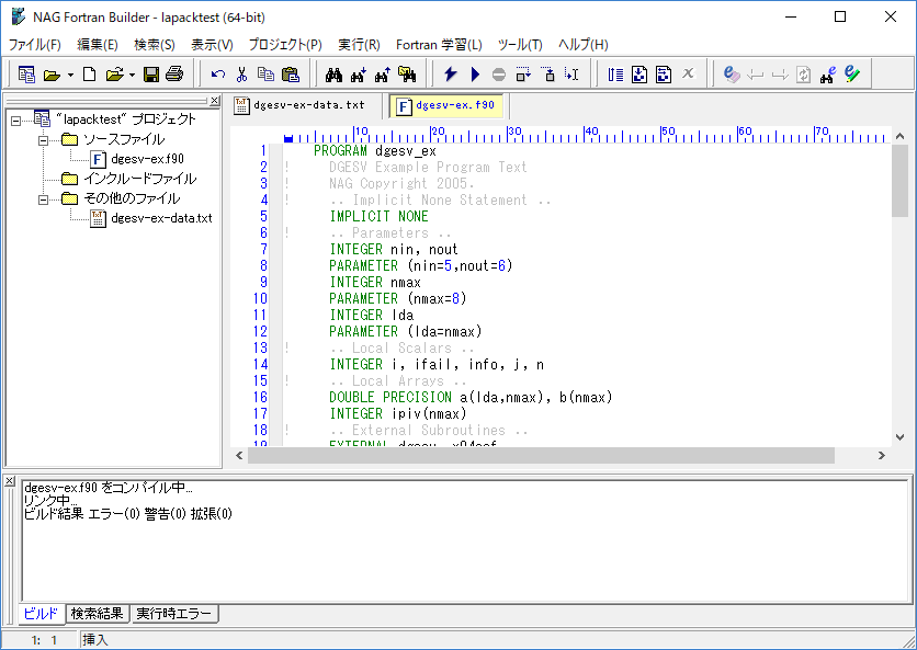 Fortran Builder には、線形方程式や固有値問題などを解くための数値計算ライブラリ LAPACK がバンドルされています。