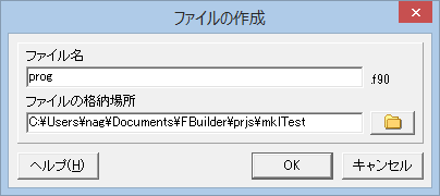 ファイル名を指定します。ここでは prog として [OK] を押して下さい。