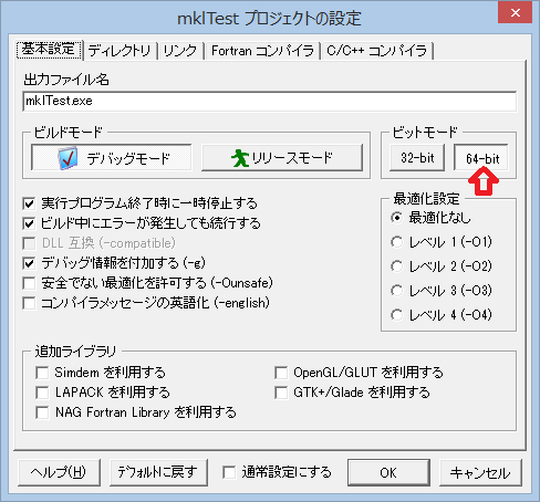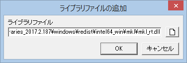 ※この際に64bitアーキテクチャ向けのもの(MKLインストール先フォルダと同じ階層にあるredistフォルダ内のintel64_win\mkl\mkl_rt.dll)を指定するようにして下さい。