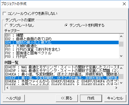 以下に Fortran Builder で nAG ライブラリテンプレートを利用する手順を示します。