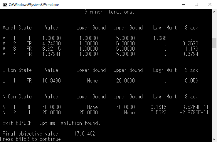 (ここでは、非線形の最適化問題を解く nAG ライブラリルーチン E04UCF を選択しています。)