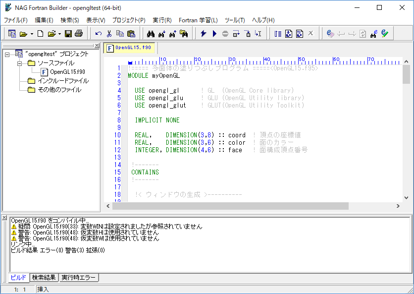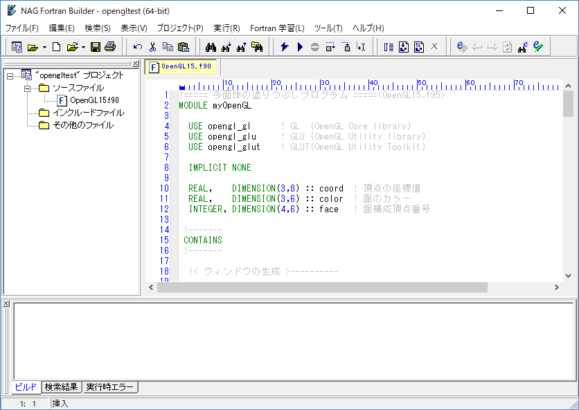 Fortran Builder には、3次元グラフィックライブラリ OpenGL/GLUT がバンドルされています。