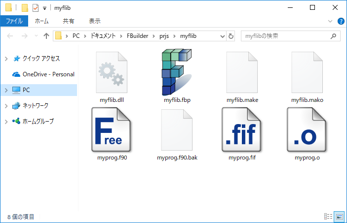 フォルダーの中に、DLL ファイル(myflib.dll)が作成されていることが分かります。