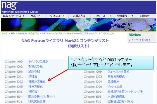前述のとおりnAG数値計算ライブラリは約50のチャプター(Chapter)に分けられています。