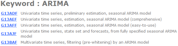 以上の操作でARIMAに関連するサブルーチン一覧が表示されます。