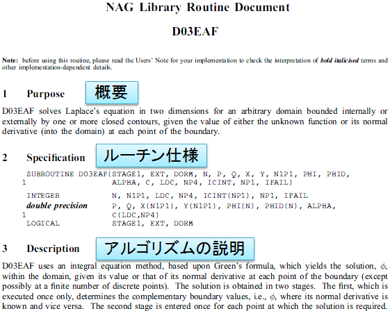 以下に一例として D03EAF のルーチンドキュメント(マニュアル)の抜粋を示します。