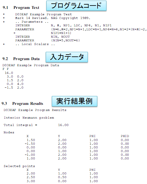 nAG数値計算ライブラリのルーチンのほぼすべてにExampleプログラムが提供されています。 利用可能なルーチンが見つかったらまずExampleプログラムを実行してみる事をお勧めします。