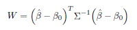 に対する共分散行列Σを返すという点を利用します。Wald 検定統計量はそのため以下の式で表されます:
