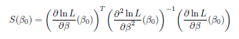 ! which gives the Score test statistic, S