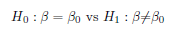 モデルがm 個のパラメータを含んでいる場合、Wald検定統計量は2種類の仮説の検定に使用されると考えられます: