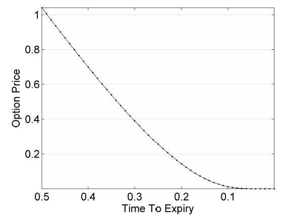 最後に、完全を期すために、方程式 (13) の解析解を求める D03ルーチン [5]について述べます;オプション価格やグリークスの計算の際に平均瞬時値を使用することにより時間依存パラメータを可能にしようとするという点で、これはS30ABFとは異なります。