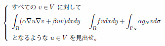 問題の変分法による定式化は有限要素法の出発点である。この手法は有限次元部分空間中における近似解を見出すことから構成される。今、