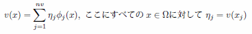 変分問題(2)を解くために、それを有限次元(離散)部分空間における問題として書き直す。