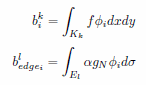 )はそれぞれ、線形系(4)の右辺に対する要素と辺による寄与を意味する。