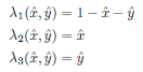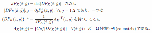 のどの3点も一直線上になければ全単射(bijective function)である。この変換のヤコビアンは
