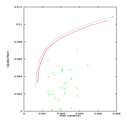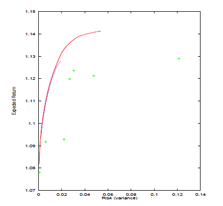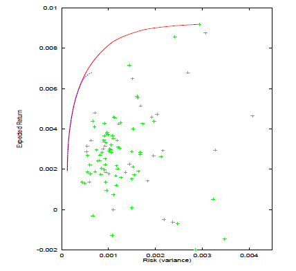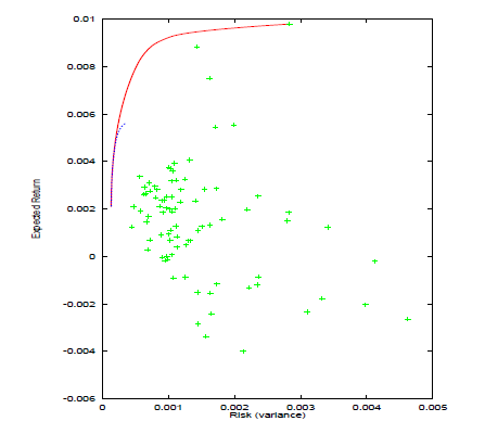 ルーチン e04nc もまた最小二乗の最小化問題や回帰問題を処理できます。多くのポートフォリオ最適化問題が最小二乗問題や回帰問題として定式化できます。そのため同一ルーチンe04nc は最小二乗問題や回帰問題として定式化されるポートフォリオ問題の他、一般のポートフォリオ最適化を解くのに使用できます。