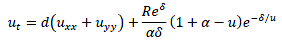 | ut = d(uxx + uyy) + f(u) | (33) |