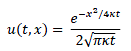 この式は任意の範囲の時間と位置の関数であるu(t,x) で表される発熱(あるいは同じく温度)を決定します。ここで は熱拡散率に関連する定数です。この偏微分方程式の変形が金融オプションプライシングのブラックショールズ偏微分方程式の解で現れる点にご注意ください。