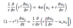 P22 = (1−r2), それ以外は0 Q1 = 4a(u2 + r∂u2 ⁄ ∂r), Q2 = 0 R1 = r∂u1 ⁄ ∂r, R2 = ∂u2 ⁄ ∂r − u1u2 |