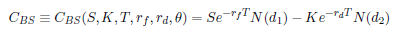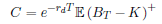 ここで rdは国内のリスクフリー金利で、K>0 は行使価格です。BTは以下の式で与えられます。