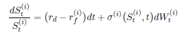 となる一連の重みです。 ローカル・ボラティリティモデルでは各原資産の変化は確立微分方程式(SDE)によって決定されます。