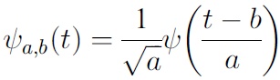 ウェーブレット変換は時系列解析から画像処理、データ圧縮、ノイズ除去など様々な分野で利用されています。ウェーブレット変換は大きく2つに分けられます。一つが連続ウェーブレット変換で、もう一つが離散ウェーブレット変換です。連続ウェーブレット変換の場合上記式のaとbは実数(a≠0)で、離散ウェーブレット変換ではaとbは整数jとkに関してa=2^(-j), b=k2^(-j)を選択することができます。