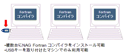 nAG)は、USBハードウエアキーによるライセンス認証を可能とした、64bitMAC版のnAG Fortranコンパイラの販売を開始しました。これによりそれぞれ固有の識別情報が付加されたUSBキーを差し込んだマシンで、nAG Fortran コンパイラが利用できるようになりました。従来、複数台分のライセンスが必要であったようなケースでも、1つのUSBキーを差し替えることにより利用可能になるなど、より柔軟な対応が可能となります。